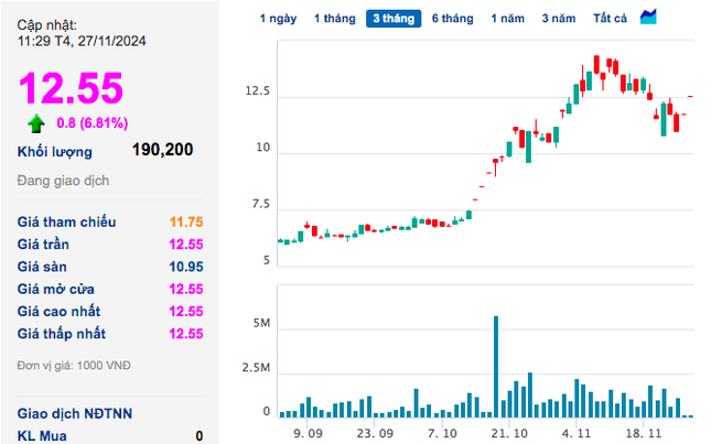 Cổ phiếu của QCG đã liên tục tăng trần trong 3 phiên giao dịch gần đây. Hiện tại, cổ phiếu QCG tăng trần, lên mức 12.550 đồng/cổ phiếu.
