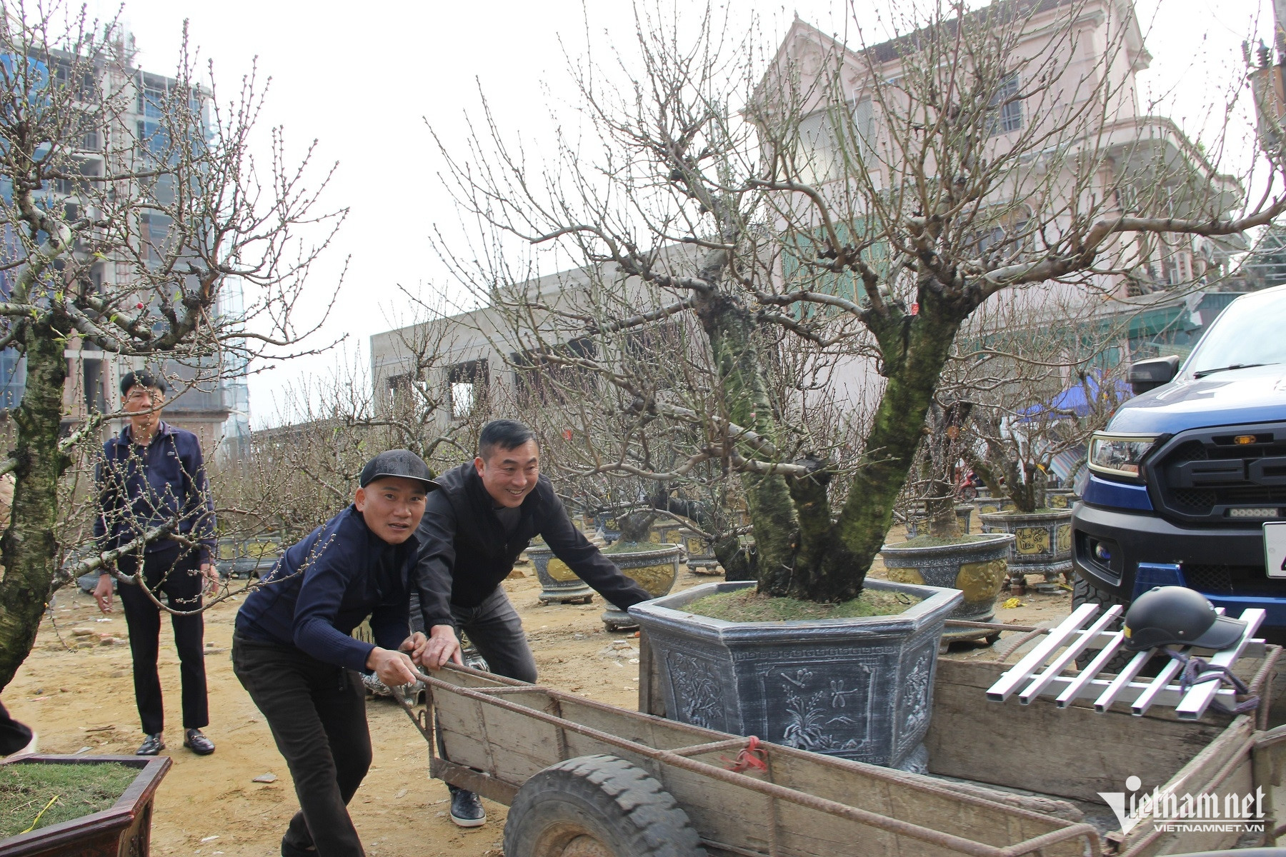 Thời điểm này, tại thành phố Vinh (Nghệ An) dọc các tuyến phố đại lộ V.Lê Nin, đường 72m... nhiều nhà vườn đã nhập về hàng trăm gốc đào cổ thụ để phục vụ thị trường Tết.