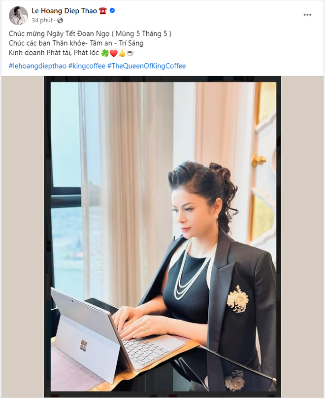 Kèm với hình ảnh, bà Thảo nhắn gửi lời chúc tới cộng đồng: "Chúc các bạn Thân khỏe- Tâm an - Trí Sáng. Kinh doanh Phát tài, Phát lộc". Những người theo dõi hành trình kinh doanh truyền cảm hứng của nữ CEO đều trầm trồ và dành nhiều lời ngợi khen vẻ ngoài trẻ trung, xinh đẹp của bà Diệp Thảo.