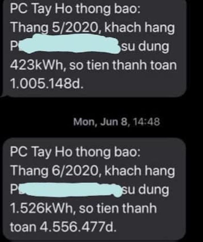 Nhận hoá đơn tháng 6 với số điện tiêu thụ hơn 1.000 kWh, chị Phương (Cầu Giấy, Hà Nội) giật mình. Với lượng điện này, chị phải trả gần 3,2 triệu đồng, trong khi tháng trước đó hầu hết thành viên trong gia đình đều ở nhà khi giãn cách xã hội vì Covid-19 chỉ trả hơn 1 triệu đồng.