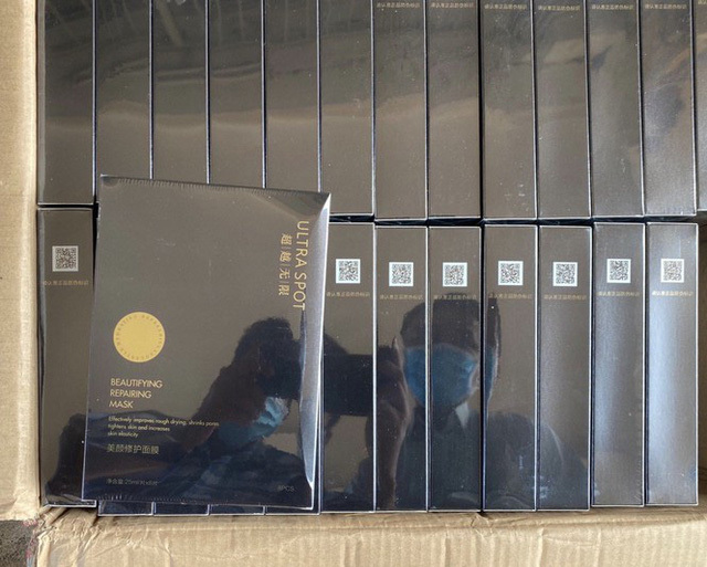 Thời điểm kiểm tra, lực lượng chức năng phát hiện 5.080 hộp mỹ phẩm các loại gồm kem dưỡng da, sữa dưỡng da ốc sên, mặt nạ dưỡng da, kem chống nắng, tinh dầu dưỡng da, kem phục hồi da hư tổn... mang các nhãn hiệu ULTRA SPOT; JIM MI LIANG LI. Tất cả không có các giấy tờ chứng minh nguồn gốc, xuất xứ.