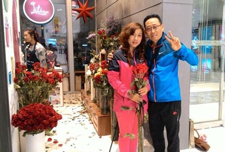 Anh Jo Young Bum và vợ với những bông hồng dài 1,2 m tối 7/3. Ảnh: Diệp Sa. |