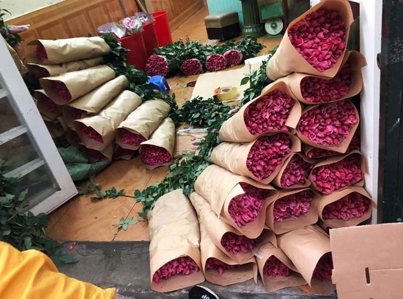 Chị Vũ Thị Huyền ,đầu mối bán hoa tươi online ở Trần Bình (Cầu Giấy, Hà Nội), cũng thừa nhận, do giá hoa hồng thơm, hồng leo vàng đang siêu rẻ nên khách ồ ạt đặt mua. Do đó, có ngày chị chốt bán khoảng 100-200 bó (mỗi bó 100 bông), cũng có ngày còn bán tới 400 bó (4 vạn bông hoa hồng).
