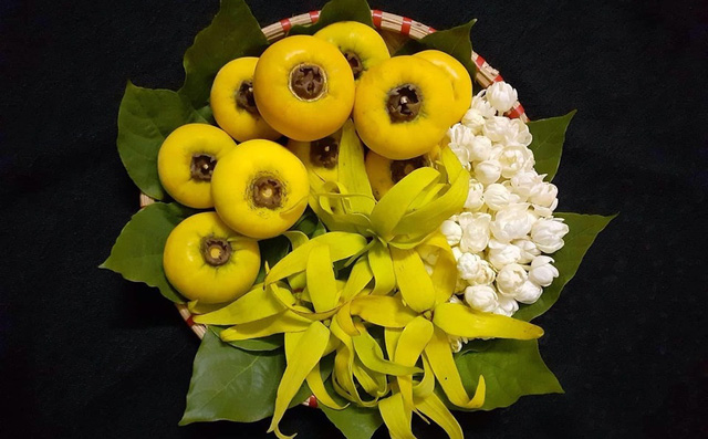 Trong đó, đắt nhất là mẹt hoa lễ giá 1,2 triệu đồng, có kích thước khoảng 40cm, gồm các loại hoa tinh khiết như hoa sen (trắng hoặc hồng), ngọc lan, hoàng lan, nhài ta, hoa cau, ngọc lan…. Hoa được bày kèm 20 – 30 trái thị chín vàng, thơm.