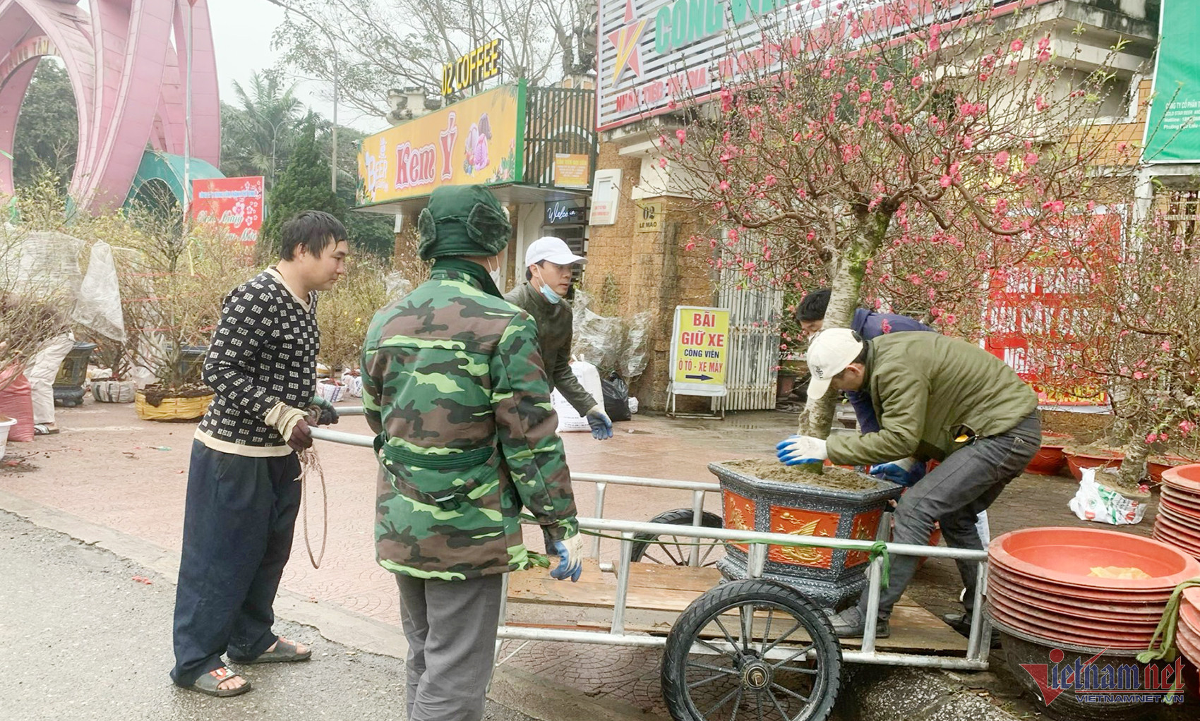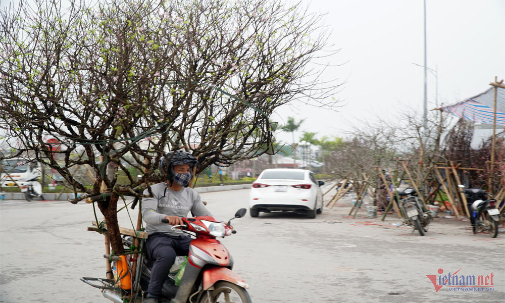 Những cây đào đá anh Hùng nhập từ Sơn La. Tính thêm cước xe, tiền bãi để bán thì tổng chi phí khoảng 250 triệu đồng. “Tôi dồn hết vốn liếng nhập đào về bán, chỉ mong có một cái Tết đủ đầy hơn lượng bán ra rất chậm. Hy vọng những ngày tới, tình hình sẽ khá hơn” anh Hùng tâm sự.