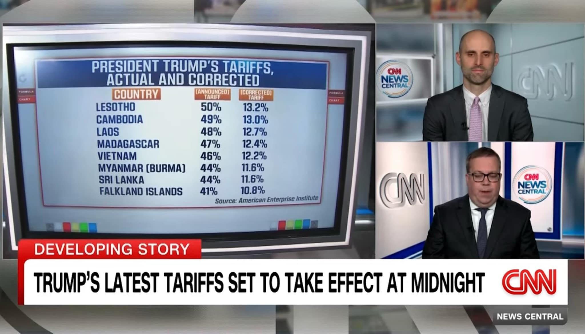 Hai học giả tại Viện Doanh nghiệp Mỹ (AEI), một tổ chức nghiên cứu chính sách, cho rằng Nhà Trắng đã sử dụng giá trị sai khi đánh giá tỷ lệ thay đổi của giá cả do ảnh hưởng của thuế quan.
