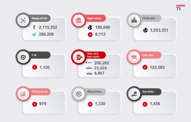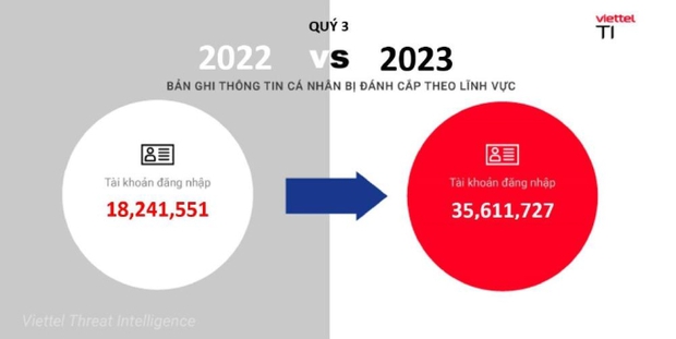 Thống kê từ Công ty An ninh mạng Viettel trong năm 2023 cho biết có hơn 11.000 tài khoản giáo dục và hơn 30.000 tài khoản ngân hàng bị xâm nhập, gây thiệt hại hơn 16 tỉ đồng. Cùng với đó, 10.552 tài khoản của các đơn vị bán lẻ, 26.654 tài khoản các đơn vị sản xuất bị xâm nhập và đánh cắp. Con số này tăng 200% so với năm ngoái.