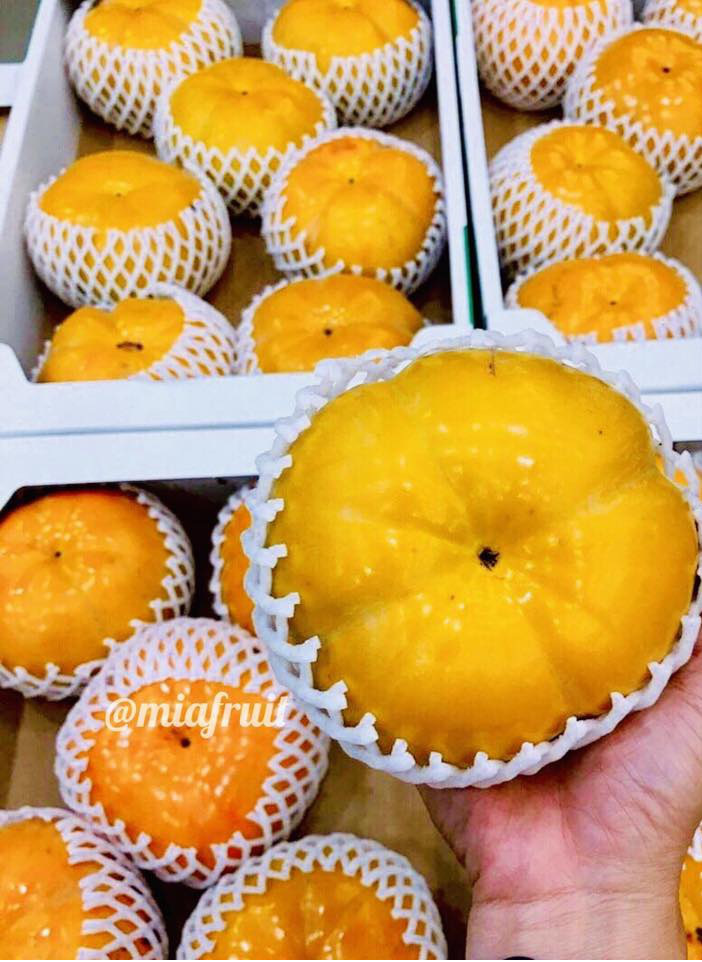 Được quảng cáo là giống hồng vuông được trồng tại Ehime (Nhật Bản), hồng tứ quý Nhật Bản sở hữu hình dáng to gấp đôi hồng mật vàng và gấp 3 hồng Việt Nam. Mỗi quả hồng nặng tới 800g.