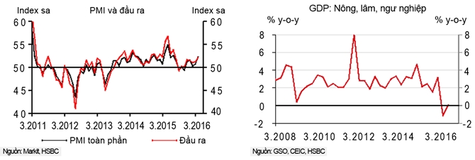Tốc độ tăng trưởng của Việt Nam trong quý I/2016 khá thấp, chỉ ở mức 5,6%, HSBC nhắc lại trong Báo cáo triển vọng kinh tế châu Á mới nhất.