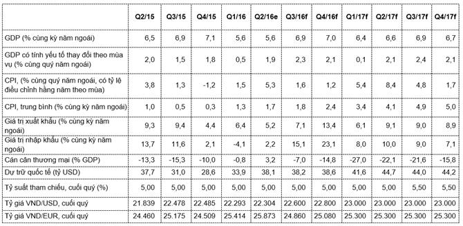 | Chỉ số kinh tế vĩ mô của Việt Nam theo dự đoán của HSBC. |