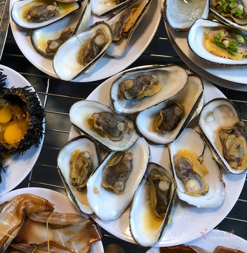Theo chị Trang, hải sản tươi sống như cua tôm ghẹ, cá,... khách đặt mua rất nhiều. Bên cạnh đó, bào ngư cũng khá đắt hàng. Đây là loài “đại bổ”, ăn vào rất có lợi cho sức khỏe, đặc biệt là người già và trẻ nhỏ.