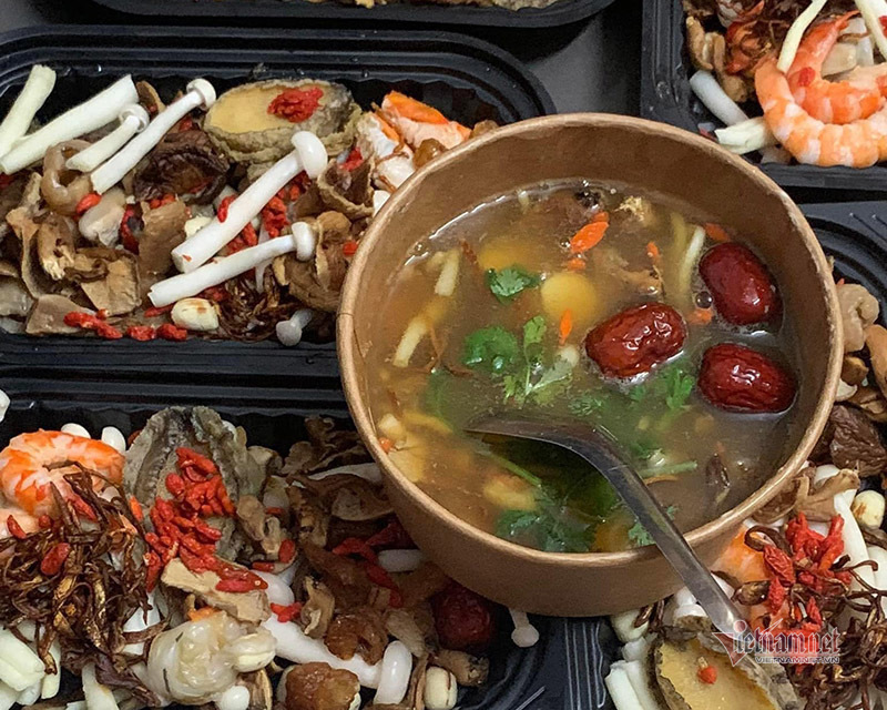 Vừa đặt mua mấy set ăn để tẩm bổ cho gia đình, chị Đỗ Hồng Hạnh (một khách hàng) cho biết: “Gia đình mình toàn F0 mới khỏi nên tranh thủ tẩm bổ tăng sức khoẻ, thấy quảng cáo hấp dẫn là mình mua ngay. Trước mình có hầm gà, chim bồ câu nhưng ăn nhiều cũng ngán nên đổi qua hải sản”.
