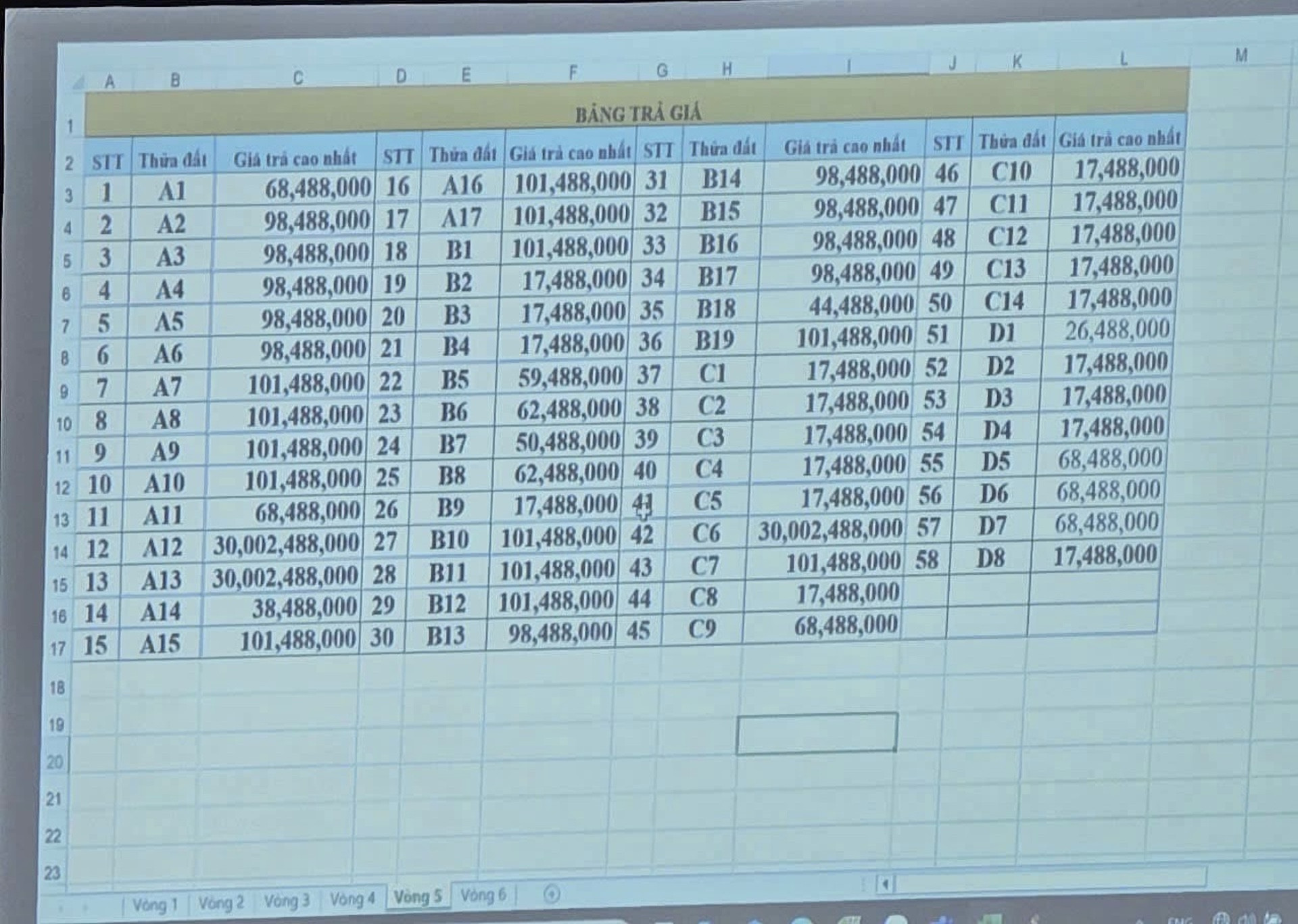 Nhưng thực tế, tại phiên đấu giá ngày 29/11, ban đầu các đối tượng đấu giá theo trình tự giá đạt mức có thể mua được. Tuy nhiên, khi phát hiện giá đấu của 36/58 lô đất vượt mức tối đa dự tính, tại vòng đấu giá thứ 5, các đối tượng đưa ra mức giá rất cao, vượt xa giá khởi điểm.