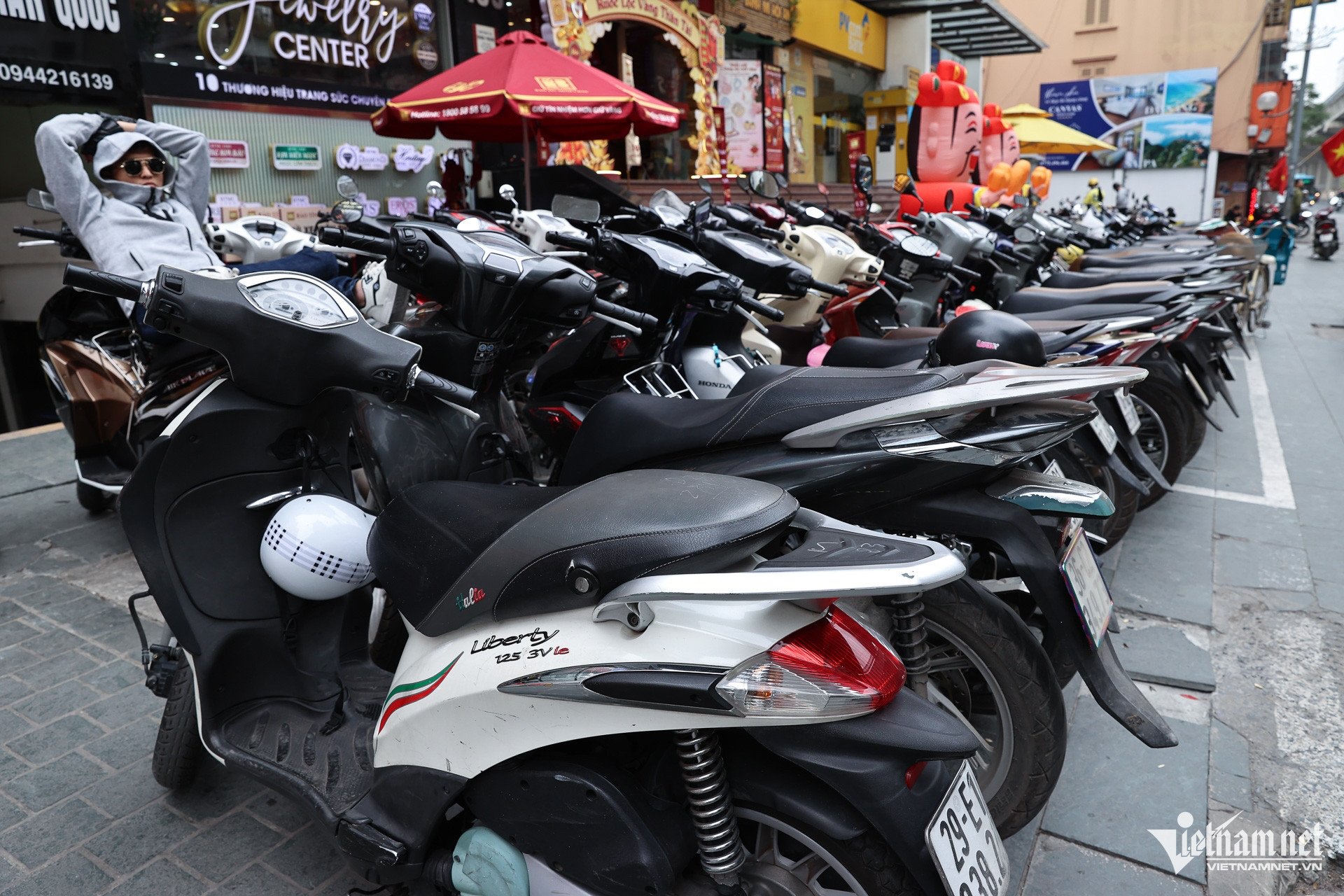 Dù mỗi người chỉ được mua tối đa 5 chỉ vàng nhẫn tròn trơn, nhiều khách vẫn chấp nhận xếp hàng từ sáng qua trưa 5/2 tại một tiệm vàng nổi tiếng Hà Nội.
