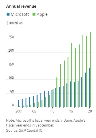 Apple và Microsoft là những công ty lâu đời nhất trong số những ông lớn công nghệ hiện đại, được thành lập vào giữa những năm 1970. Khi còn trẻ, Messrs, Jobs và Gates tỏ rõ sự không ưa nhau trong nhiều năm.