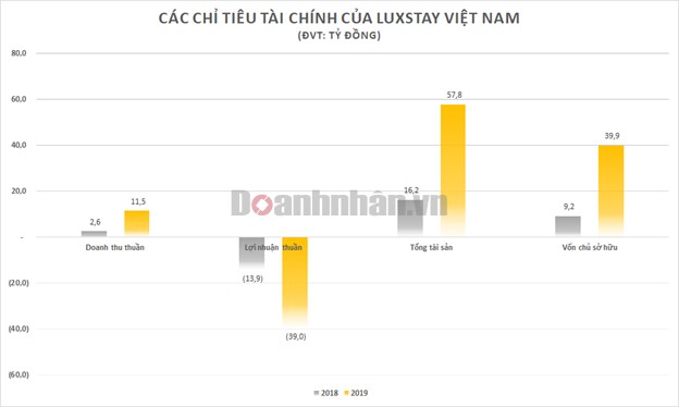 Ngay trong năm đầu thành lập, năm 2018, Luxstay Việt Nam lỗ 13,9 tỷ đồng khi chỉ phát sinh 2,6 tỷ doanh thu. Đến năm 2019, doanh thu của doanh nghiệp này tăng vọt lên 11,5 tỷ đồng, tuy nhiên khoản lỗ lại tiếp tục bị đào sâu đến 39 tỷ đồng.