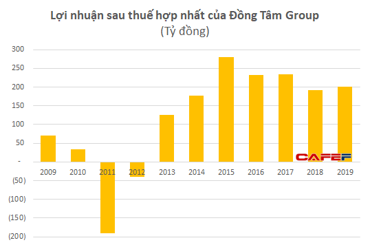 Về phía Đồng Tâm Group, kết quả kinh doanh hợp nhất của doanh nghiệp này trong những năm gần đây không có nhiều điểm nhấn với doanh thu ổn định quanh mức 2.000 tỷ đồng/năm còn lợi nhuận sau thuế dao động quanh 200 tỷ đồng/năm.