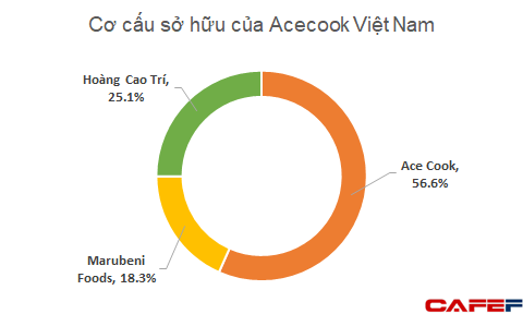Tính đến năm 2020, Acecook Việt Nam có vốn điều lệ 298 tỷ đồng, trong đó cổ đông Nhật Bản là Acecook Co., LTD nắm giữ 16,9 triệu cổ phần, giá trị 169 tỷ đồng, tương đương 56,64%. Cơ cấu sở hữu Vina Acecookcòn có sự xuất hiện của một cổ đông Việt Nam, là ông Hoàng Cao Trí (1962) – người nắm giữ 25,16% cổ phần.