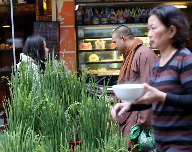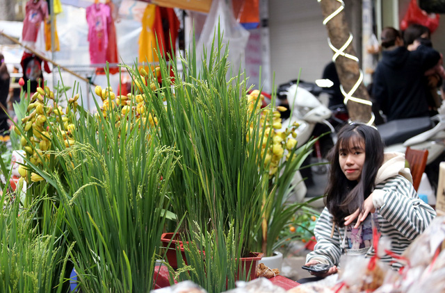 Với ý nghĩa no đủ, một vài tiểu thương đã mang những khóm lúa trồng lên chậu bán với giá 150.000 đồng khiến không ít người ngỡ ngàng. Chị Huyền - một người bán hàng cho biết: "Những khóm lúa này được tuyển chọn từ một huyện ngoại thành Hà Nội mang đến đây phục vụ nhu cầu chơi Tết của người dân. Giá mỗi khóm lúa là 150.000 đồng kèm chậu nhựa không quá đắt và cũng nhận được sự đón nhận của đông đảo người dân".