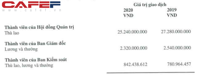Mặc dù vậy, thù lao thành viên Hội đồng quản trị và lương thưởng của Ban Giám đốc đều giảm so với năm 2019.