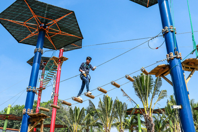 Khu vui chơi giải trí ở đây có hơn 40 trò chơi ở nhiều cấp độ khác nhau để đáp ứng nhu cầu vui chơi của mọi đối tượng, mọi độ tuổi, nhiều trò chơi hiện đại cảm giác mạnh như: Tàu lượn siêu tốc khổng lồ, Vòng xoay vũ trụ, Thuyền đụng, Phi thuyền đại chiến, Phao đụng, Xe điện đụng, Thế giới tuyết, Lâu đài phù thủy, Cung ngũ long, Đu quay ong.