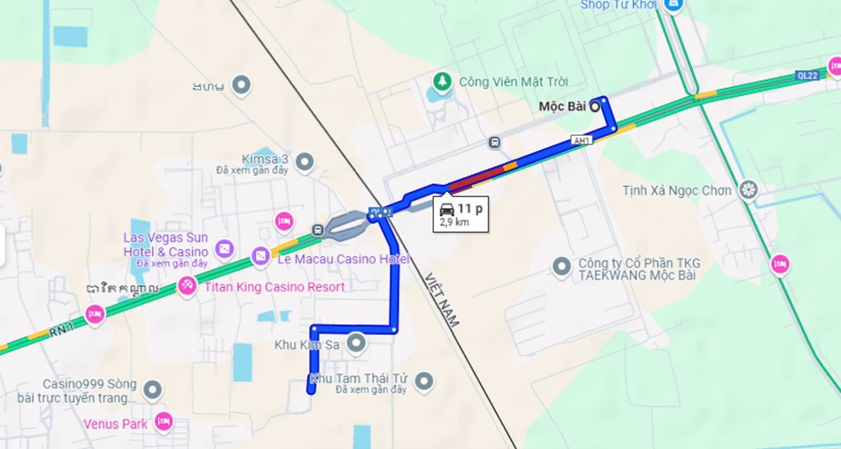 Nhiều năm qua, không ít công dân Việt Nam đã bị lừa bán qua Campuchia, lao động và cư trú bất hợp pháp tại “thiên đường casino” ngay cửa khẩu Bavet... với các sòng bài như: Las Vegas Sun Casino, Titan King Resort and Casino, Crown Casino Bavet, Dynasty Casino Hotel, Mộc Bài, New World, Le Macau, Gwin...