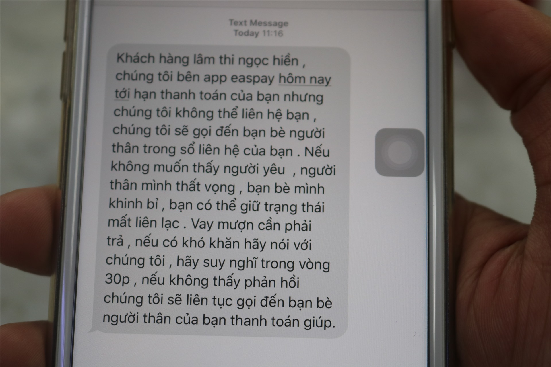 Chị L cho biết, bản thân không hề vay qua app, nhưng số điện thoại của mình liên tục bị các đối tượng nhắn tin, đe dọa, chửi bới yêu cầu trả nợ thay cho một người nào đó mà bản thân chị không hề biết đến.