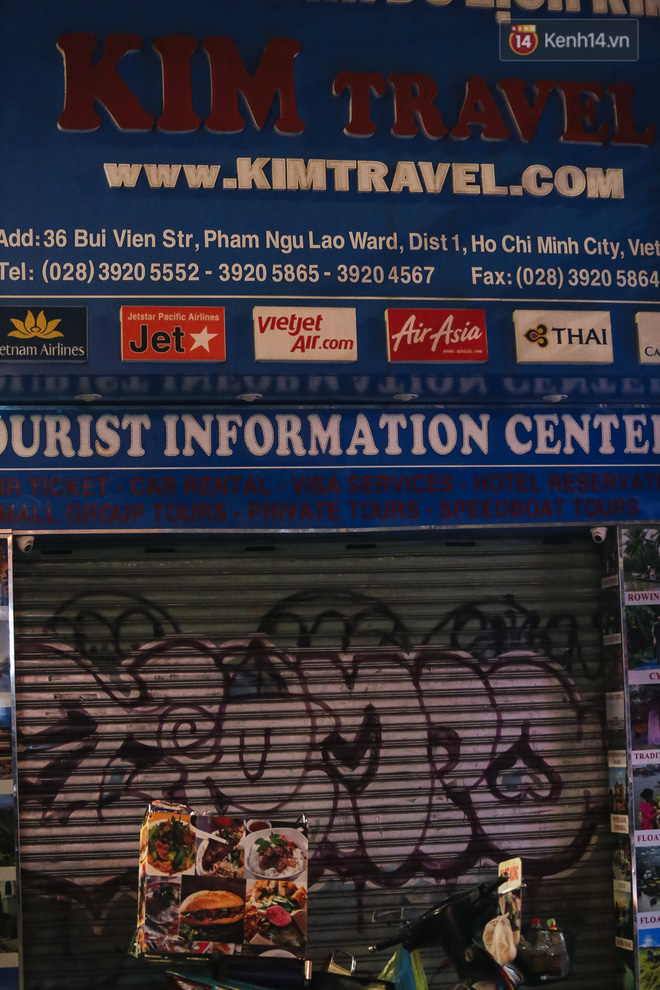 Khi đồng hồ chuyển sang 23h, tiếp tục ghi nhận tại các tuyến phố ở quận 1 cũng dễ dàng nhận thấy nhiều cửa hàng ăn uống, khách sạn,… đã tắt đèn tối om, trả mặt bằng vì không có khách du lịch, chứ không riêng gì con phố Tây Bùi Viện.