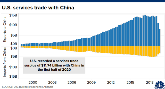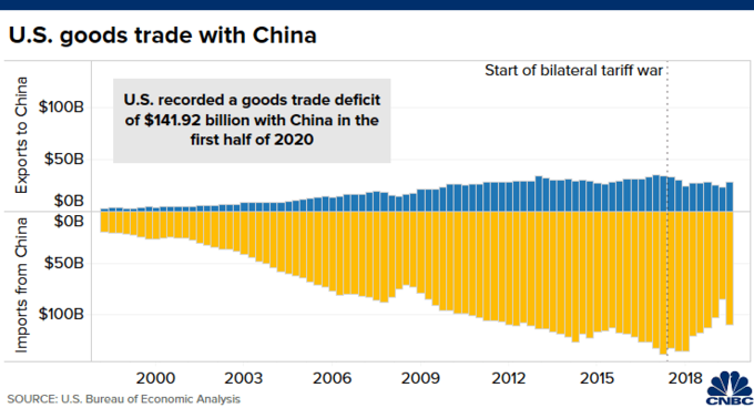 Cả hai nước đều đang cố gắng cân bằng cán cân thương mại hàng hóa. Trung Quốc đã đồng ý tăng nhập khẩu hàng Mỹ theo thỏa thuận sơ bộ ký đầu năm nay. Dù vậy, các chuyên gia cho rằng thương mại giữa hai nước có thể xuống cấp hơn nữa trong năm nay, khi quan hệ xấu đi và đại dịch đe dọa các hoạt động kinh tế toàn cầu.