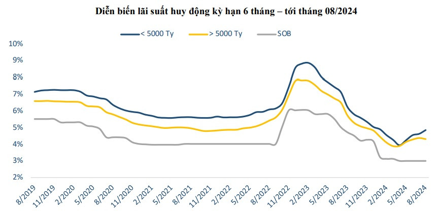 Sau khi giảm, lãi suất tiền gửi cao nhất tại OCB, Bac A Bank và SeABank về dưới ngưỡng 6%/năm, trong khi tại ABBank lãi suất cao nhất là 6%/năm.