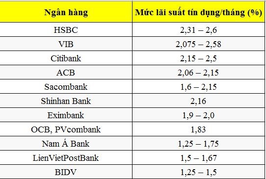 Dưới đây là biểu lãi suất tín dụng ở mức thấp nhất hiện nay tại một số ngân hàng, bạn đọc quan tâm có thể tham khảo thêm:
