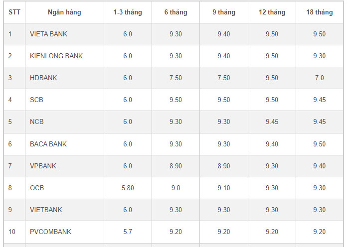 Trong số các ngân hàng thương mại, Sacombank, VietBank, OceanBank, CB, SCB,... là những ngân hàng không có sự thay đổi gì về lãi suất trong một tháng qua. Tại SCB, tiền gửi tiết kiệm online kỳ hạn 1-3 tháng trả lãi suất 6%/năm, các kỳ hạn 6 và 12 tháng (9,5%/năm), 18 tháng (9,45%/năm), trong khi kỳ hạn 9 tháng là 9,4%/năm.