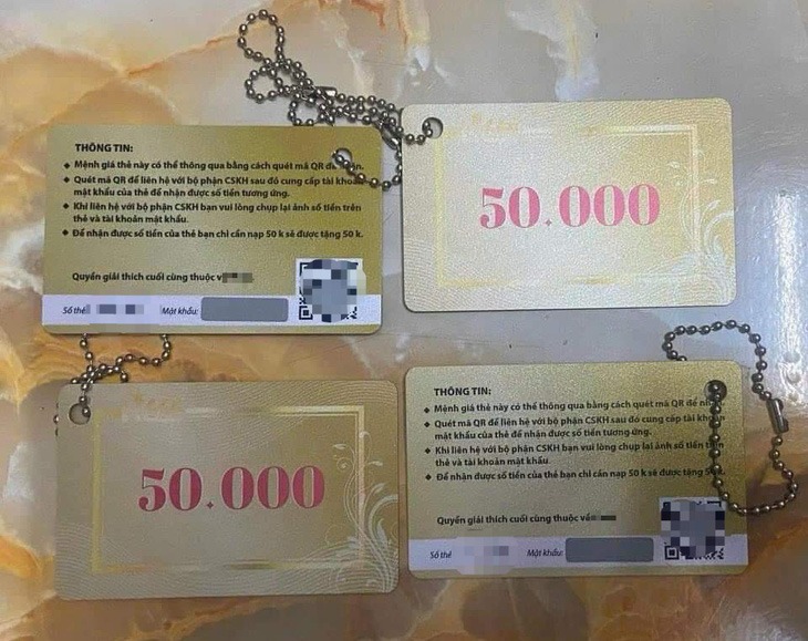 Chúng dụ dỗ người khác bằng cách ghi trên số thẻ, mật khẩu bị che mờ phải cạo ra mới biết thông tin. Trên thẻ còn hướng dẫn các bước quét mã QR code để liên hệ với bộ phận chăm sóc khách hàng, cung cấp mật khẩu thẻ rồi nhận số tiền tương ứng ghi trên thẻ.