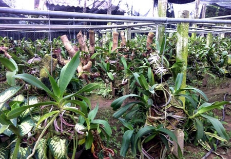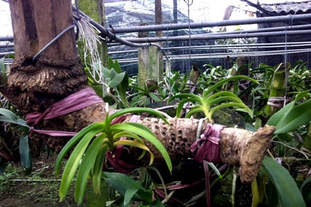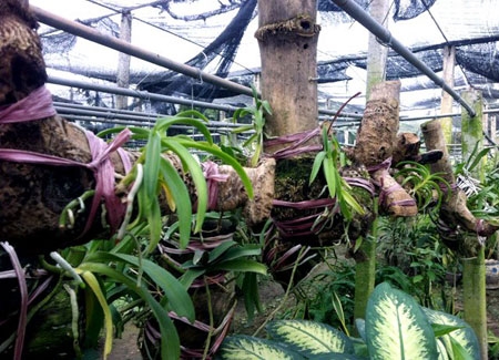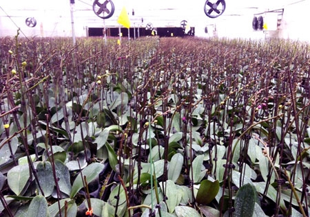 Những nhà vườn lớn, số lượng giò lan lên tới cả vạn giò, được treo trong các nhà vườn phủ lưới rộng hàng ngàn m2, có điện thắp sáng và hệ thống quạt thông hơi, vòi phun nước tự động...