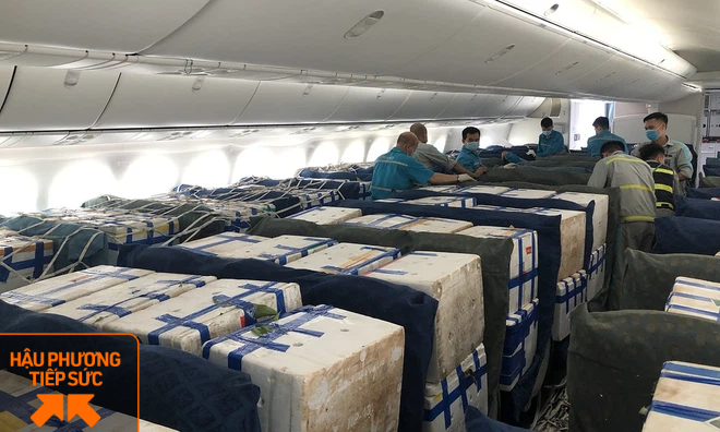 Theo đại diện Vietnam Airlines, những tấn vải này được bố trí "ngồi" trên trên ghế khoang hành khách để tăng tải trọng vận chuyển cùng với việc được chất xếp trong khoang hàng hóa.