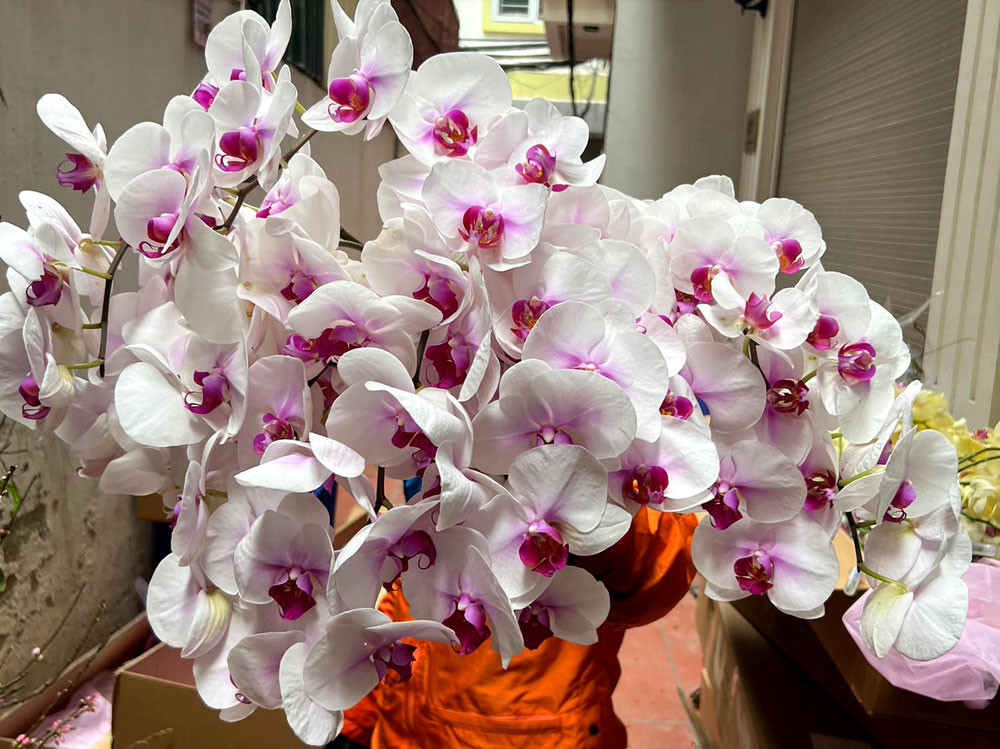 Trên thị trường, nhiều nơi rao bán lan hồ điệp, giá dao động từ 25.000-30.000 đồng/cành. Mặt hàng này tương đối hút khách mua vì giá rẻ hơn nhiều so với mua cây. Song, một số chủ hàng không dám nhập quá nhiều bởi đã cận Tết, shipper chỉ giao được lượng đơn hàng nhất định trong một ngày. Nếu nhập nhiều, khách ồ ạt chốt đơn, shipper giao hàng không xuể.