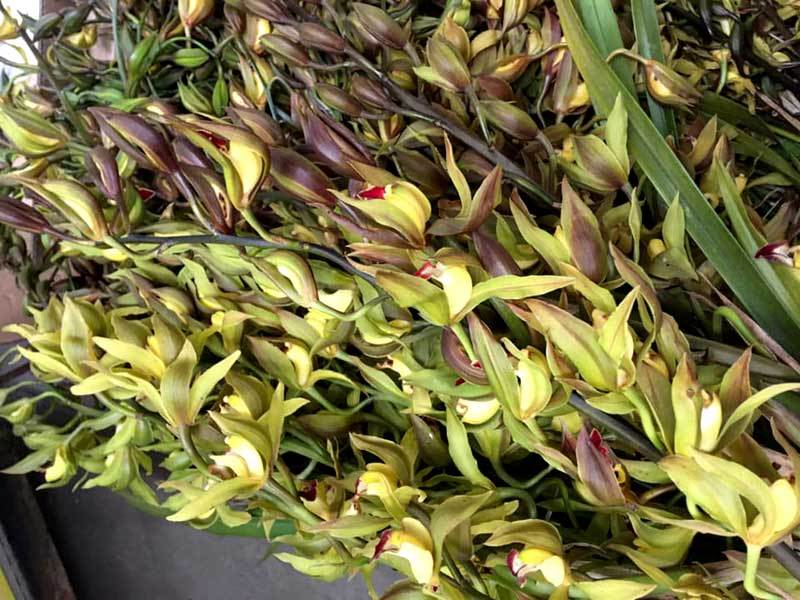“Dịp này là lan cuối vụ, bà con trên vùng Lai Châu cắt cành hoa bán dọn vườn để chuẩn bị dưỡng cây cho mùa vụ sau. Đây cũng là lý do mà lan Trần Mộng có giá siêu rẻ như vậy”, chị nói. Hiện mỗi ngày chị bán hết khoảng 200 cành lan loại này.