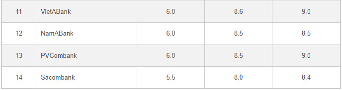 Lãi suất các kỳ hạn 10-24 tháng trước đó được NCB áp dụng mức chung 9,45%/năm, nhưng nay giảm xuống mức 9,25%/năm (kỳ hạn 10-11 tháng) và 9,3%/năm với các kỳ hạn 12-36 tháng.