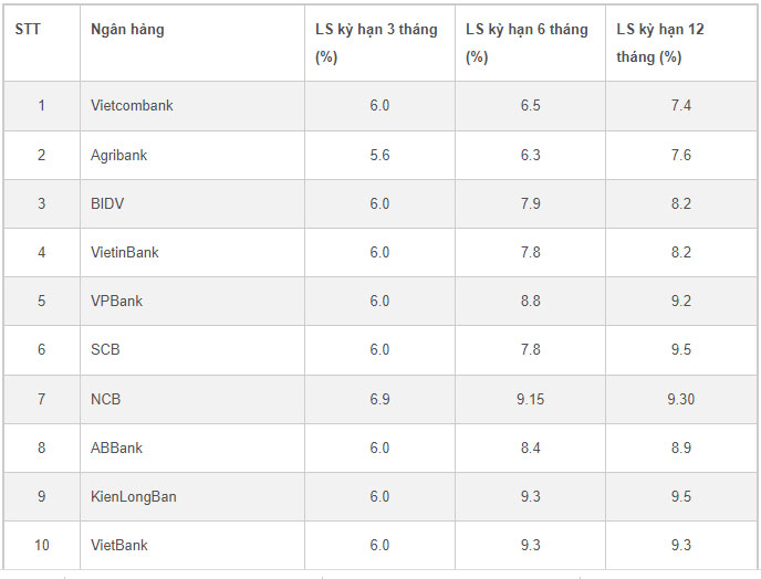 Trong đó, Agribank và Vietcombank đang là hai ngân hàng duy trì lãi suất huy động mức thấp nhất thị trường.