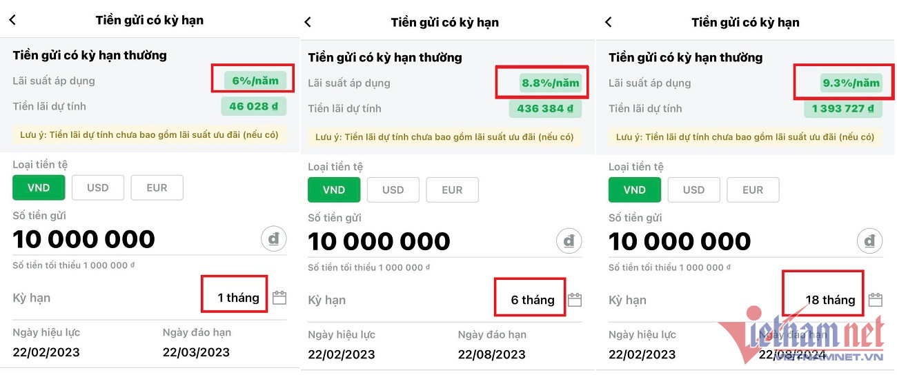 Lãi suất kỳ hạn 9 tháng giảm từ 9,4% xuống còn 8,1%/năm, trong khi kỳ hạn 12 tháng tiếp tục giữ nguyên mức 9,5%/năm. Các kỳ hạn sau 12 tháng giảm từ 9,45% xuống còn 9,1%/năm.