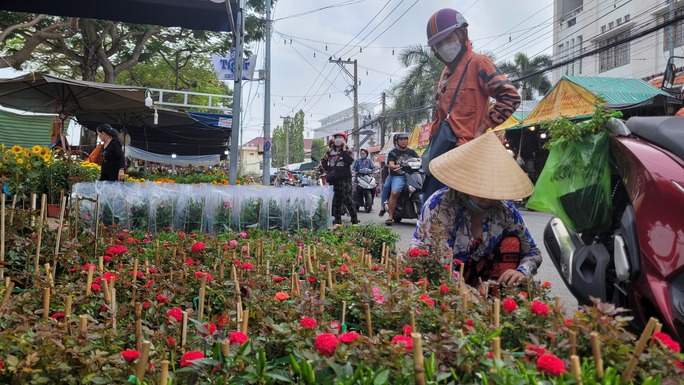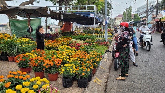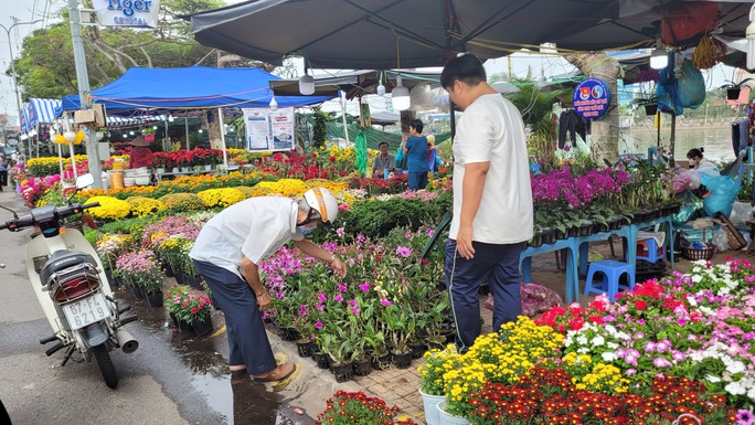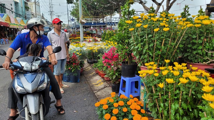 Khác với khu bày chủ yếu mai vàng trên đường Bùi Thị Xuân, khu trưng bày hoa trên đường Bùi Văn Danh rực rỡ màu sắc với đa dạng các loại hoa kiểng có giá ở mức bình dân vài chục ngàn đồng đến vài chục triệu đồng cho mỗi chậu hoa. Tại khu vực này, khách hàng đến mua mỗi lúc một nhộn nhịp.