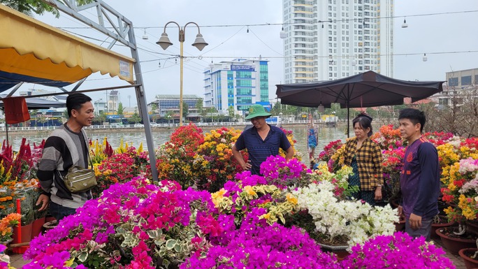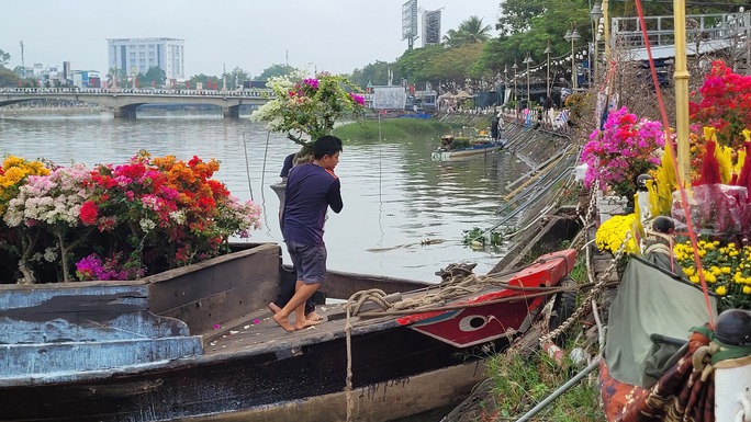 Dọc theo 2 tuyến đường Bùi Văn Danh và Bùi Thị Xuân đã phủ kín các khóm hoa đủ màu sắc; trên bến dưới thuyền cũng đều là hoa với hoa.
