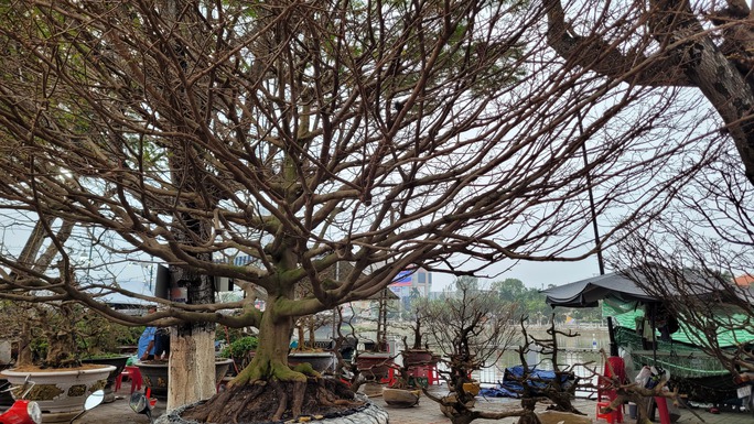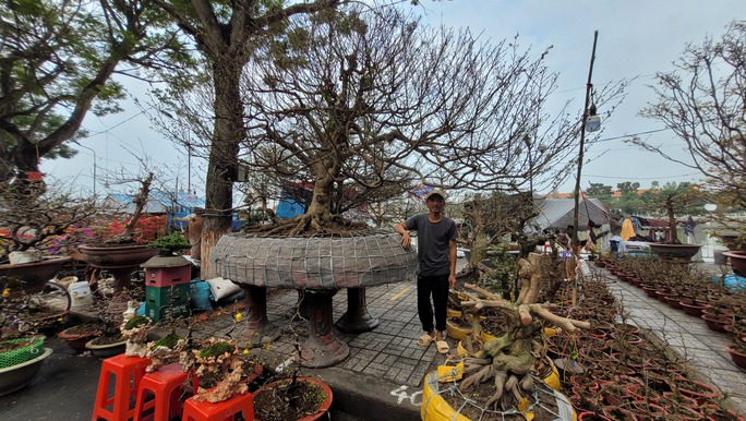 Từ đầu tháng Chạp, anh Lộc (ngụ huyện Chợ Mới, tỉnh An Giang) mang đến chợ hoa xuân TP Long Xuyên 4 cây mai vàng, trong đó có 2 cây được định hình tay cành uốn lượn theo phong cách bonsai khá công phu, đang gọi giá hơn 500 triệu đồng.