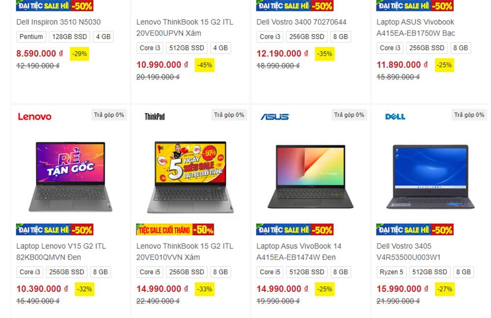Nhằm kích cầu mua sắm, đẩy hàng tồn, các siêu thị điện máy, đại lý máy tính tung ra nhiều chương trình ưu đãi, giảm giá mạnh cho các sản phẩm laptop. Trên trang web của một số siêu thị điện máy lớn, giá các mẫu laptop giảm từ 15-38%, một số mẫu giảm tới gần 50%. Sau giảm giá, có mẫu laptop giá chỉ từ hơn 6 triệu đồng.
