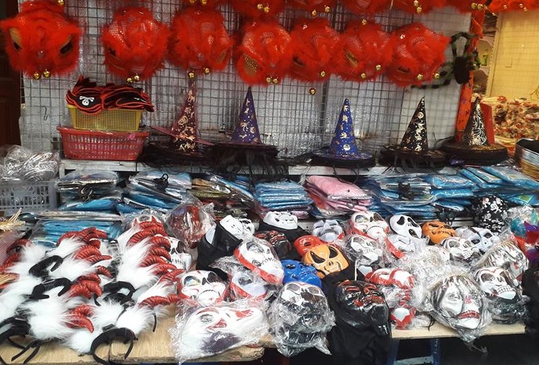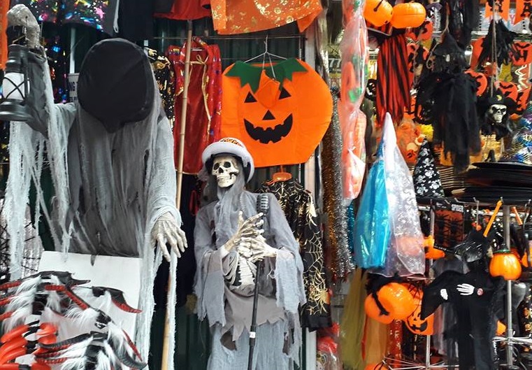 Lễ hội hóa trang – Halloween đang đến gần (31/10), tại những khu phố chuyên bán quần áo hóa trang, mặt nạ, phụ kiện trên địa bàn Hà Nội, không khí đang trở nên nhộn nhịp, sôi động. Theo khảo sát của PV tại phố Hàng Mã, Nghĩa Tân, đường Láng… các cửa hàng đã bày bán nhiều đồ hóa trang như: Mặt nạ quỷ, quần áo bộ xương, lưỡi hái tử thần, bà phù thủy, dao đâm tự động không thủng, bàn tay bò cảm ứng, đầu lâu tự rơi... giá các mặt hàng dao động từ 30.000 đồng đến 300.000 đồng/món đồ, tùy loại.