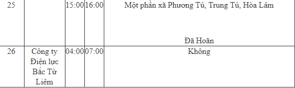 Tuy nhiên, vẫn có một số quận, huyện của thành phố bị cắt điện hôm nay, cụ thể: