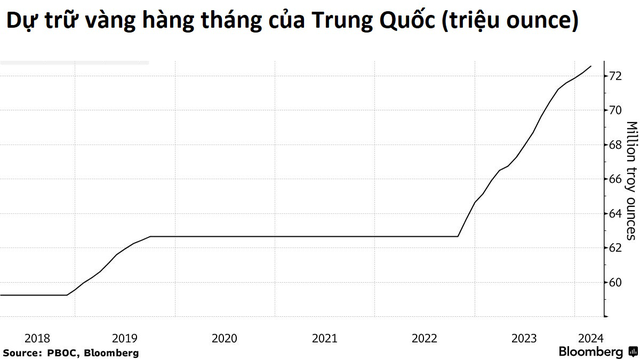 Đồng quan điểm, hãng tin CNBC cho hay PBOC đã liên tục mua vàng từ tháng 11/2022, đưa tổng dự trữ lên 2.257 tấn, đồng thời đã gia tăng lượng dự trữ vàng 16 tháng liên tiếp.