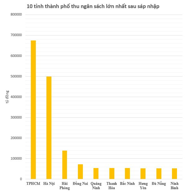 Sau sáp nhập, TP. HCM (sáp nhập với Bình Dương và Bà Rịa - Vũng Tàu) dự kiến sẽ tiếp tục sẽ có số ngân sách cao nhất cả nước. Trong năm 2024, tổng thu ngân sách của TP. HCM, Bình Dương và Bà Rịa Vũng Tàu đạt hơn 675.000 tỷ đồng.