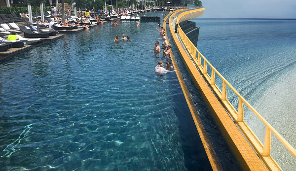 Không chỉ dát vàng các tòa nhà ở Hà Nội, năm 2017, dư luận lại một lần nữa xôn xao về dự án Khu phức hợp Hòa Bình Green Đà Nẵng (đường Lê Văn Duyệt, phường Nại Hiên Đông, quận Sơn Trà, TP Đà Nẵng) có bể bơi vô cực dát vàng trên tầng mái. Vào ngày 1/10/2017, Tổ chức Kỷ lục Việt Nam (VietLings) đã trao chứng nhận đây là bể bơi vô cực dát vàng 24K cao nhất Việt Nam (bể bơi được xây trên nóc tòa nhà 29 tầng, dát vàng phần gạch).