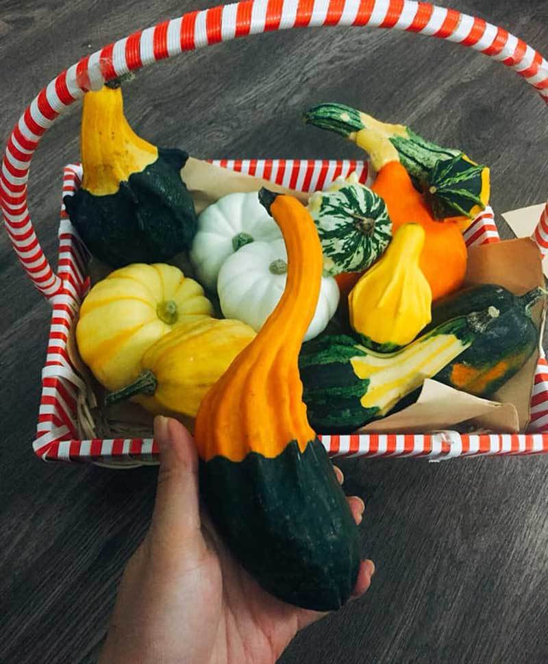 Là fan cuồng của loại bí này, chị Vũ Vân Hương ở Yên Ninh (Ba Đình, Hà Nội), từ Giáng sinh năm ngoái tới nay bỏ ra hơn 2 triệu đồng mua các loại bí baby xanh, trắng, cam, vàng,... về trang trí trong nhà cho vui mắt.